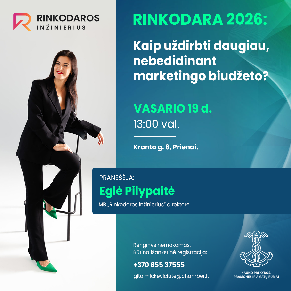 Eglė Pilypaitė – marketingo agentūros „Rinkodaros Inžinierius“ įkūrėja, rinkodaros strategė, Lietuvos marketingo asociacijos (LiMA) narė ir LiMA mentorė. Ji aktyviai dalyvauja verslo bendruomenėse, priklauso BNI verslo rekomendacijų organizacijai, Kauno prekybos, pramonės ir amatų rūmams bei Vilniaus prekybos, pramonės ir amatų rūmams.