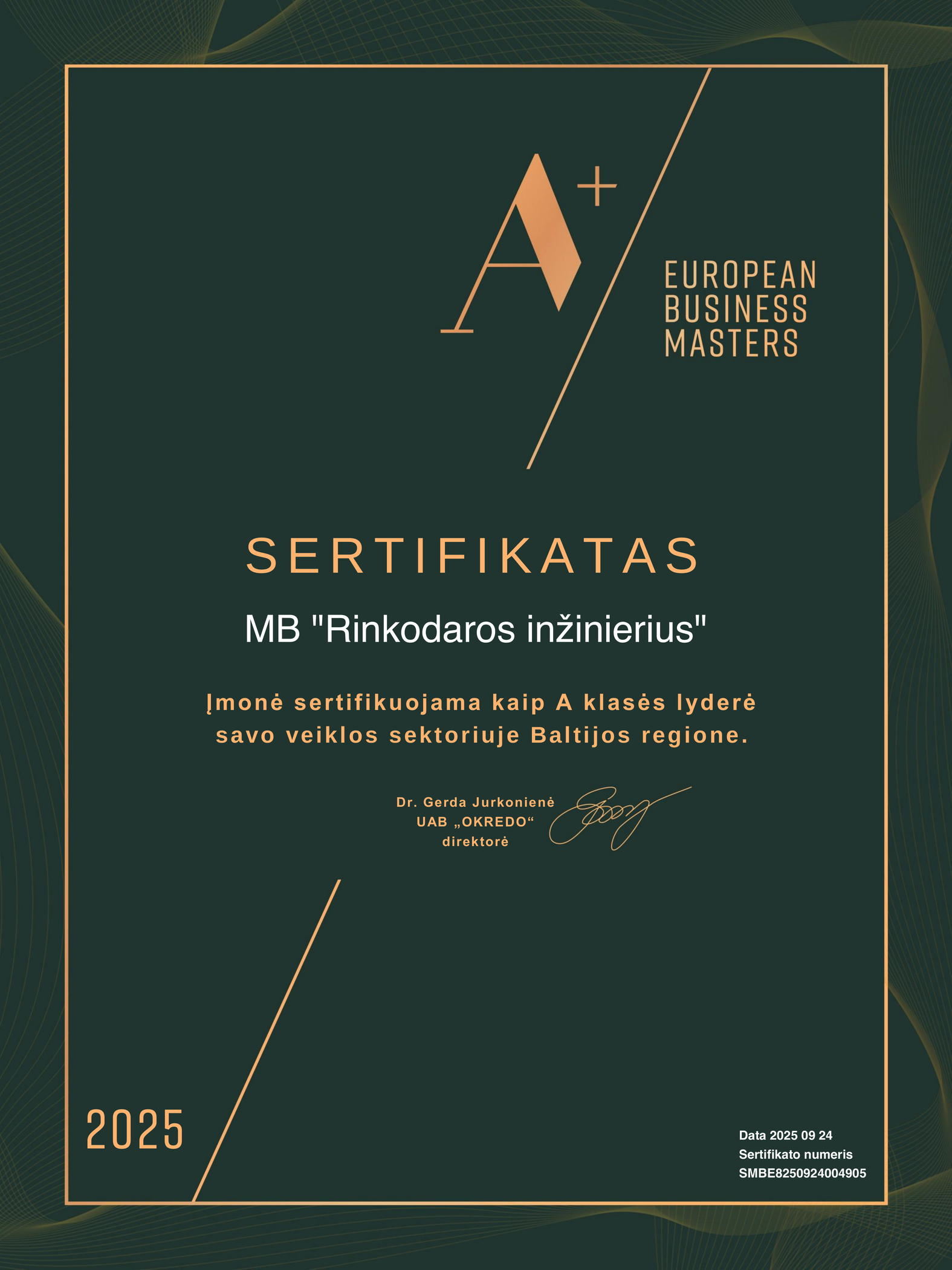 MB „Rinkodaros inžinierius“ sulaukė svarbaus įvertinimo – įmonė sertifikuota kaip A klasės lyderė savo veiklos sektoriuje Baltijos regione. Sertifikatą suteikė duomenų analizės ir kreditingumo vertinimo įmonė „OKREDO“, atidžiai vertinanti įmonių finansinius rodiklius, reputaciją bei augimo perspektyvas.